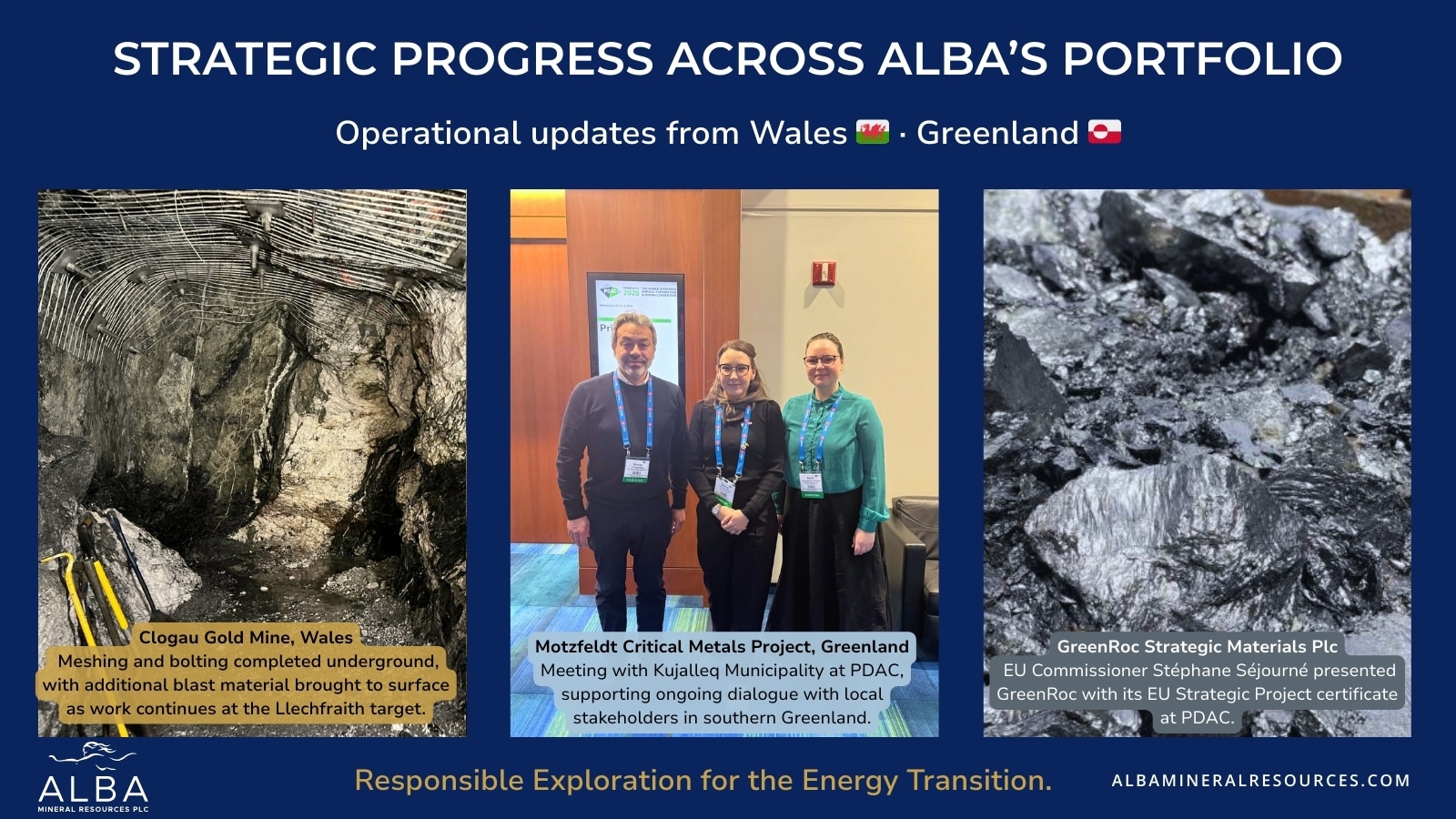The past week has seen steady progress across Alba’s key projects and investments, alongside a productive set of meetings at the PDAC Convention in Toronto.